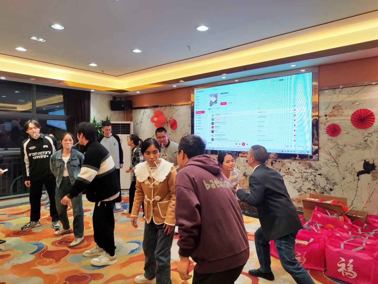 除了歡樂的游戲,晚宴還設(shè)置了激動(dòng)人心的抽獎(jiǎng)環(huán)節(jié)。隨著抽獎(jiǎng)小程序的緩緩轉(zhuǎn)動(dòng),一份份精美的獎(jiǎng)品落入幸運(yùn)兒手中,中獎(jiǎng)?wù)叩南矏偱c激動(dòng),未中獎(jiǎng)?wù)叩牧w慕與期待,交織在一起,為晚宴增添了更多的驚喜與歡樂。